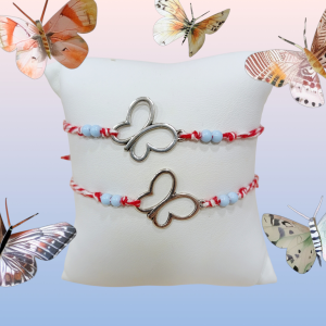 4,00 €Χειροποίητο μαρτάκι με με μεταλλική πεταλούδα σε ασημί απόχρωση και γαλάζιες χάντρες