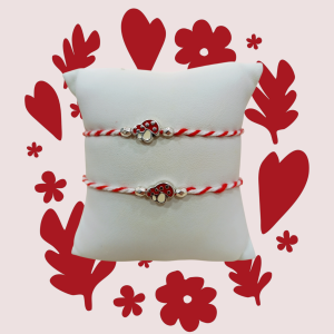 5,00 €Χειροποίητο μαρτάκι με κρεμαστή καρδούλα σε 2 αποχρώσεις (χρυσό – ασημί) και κεραμικές κυλινδρικές χάντρες.