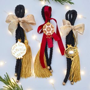 8,00 €7,20 €Γούρι με φούντα και μεταλλικό Χριστουγεννιάτικο δέντρο με στρας.