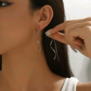 10,00 €8,00 €💎 Μακριά ασημί σκουλαρίκια με κομψή, καμπυλωτή γραμμή.