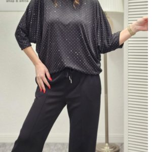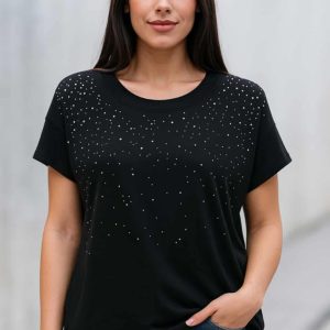 Μπλούζα κοντομάνικη σε μαύρο με στρας