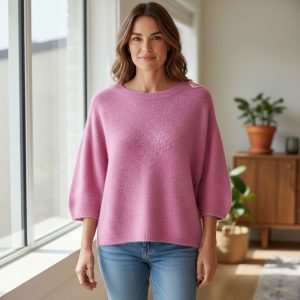 Πουλόβερ σε ροζ απόχρωση με 3/4 μανίκι.