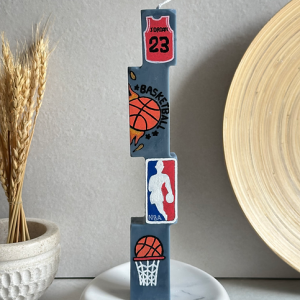 Λαμπάδα αρωματικό κερί/γλυπτό, χειροποίητο μέχρι και την τελευταία λεπτομέρεια και ζωγραφισμένο στο χέρι, σχέδιο “Μπάσκετ”. Χρώμα ανθρακί με άρωμα σανδαλόξυλο.
