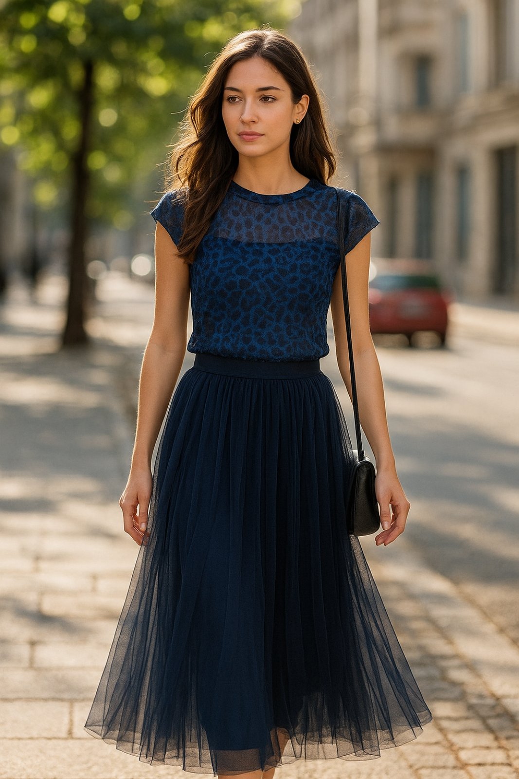 Μπλούζα διαφάνεια λέοπαρ σε αποχρώσεις του μπλε για να ξεχωρίσεις στις βραδυνές σου εμφανίσεις.
