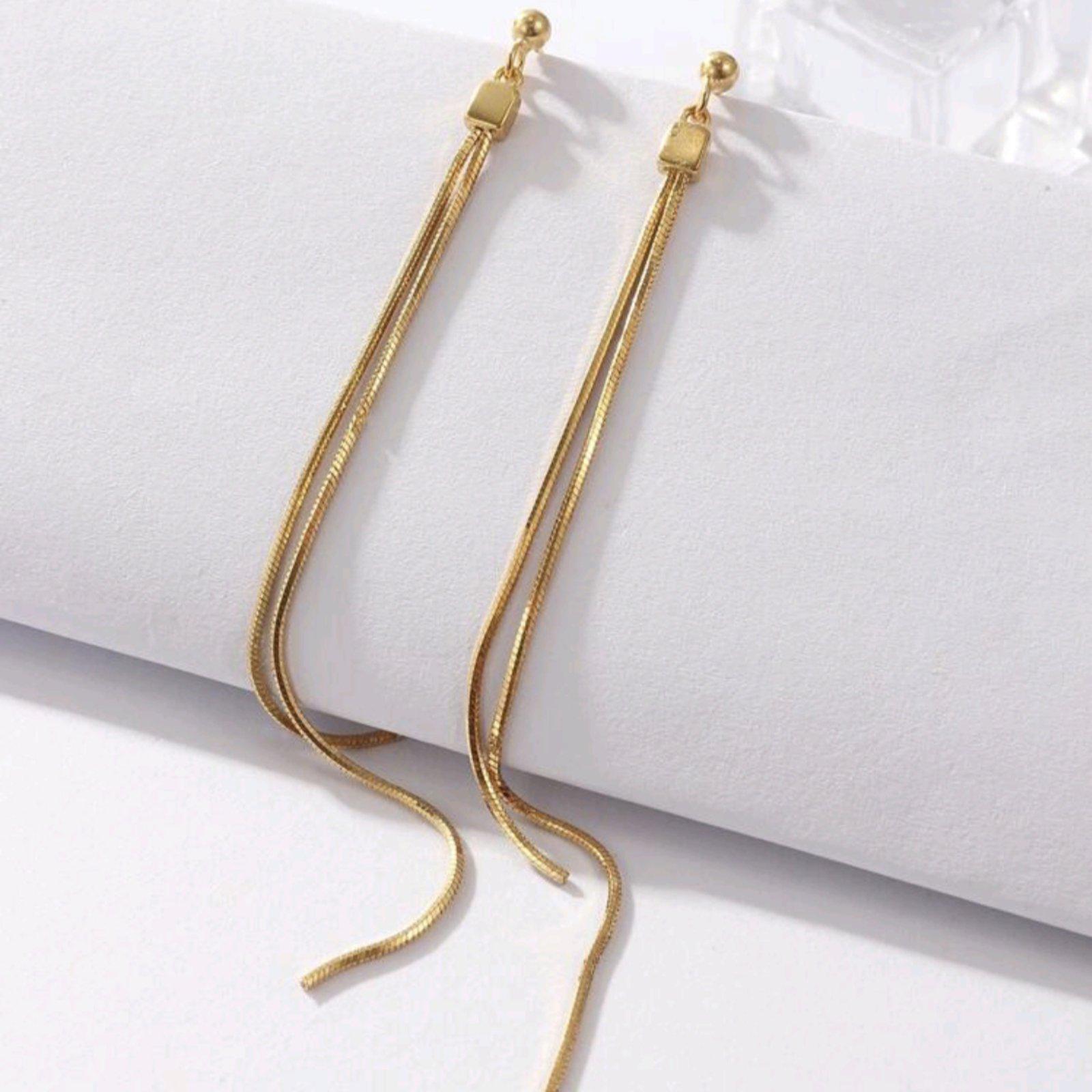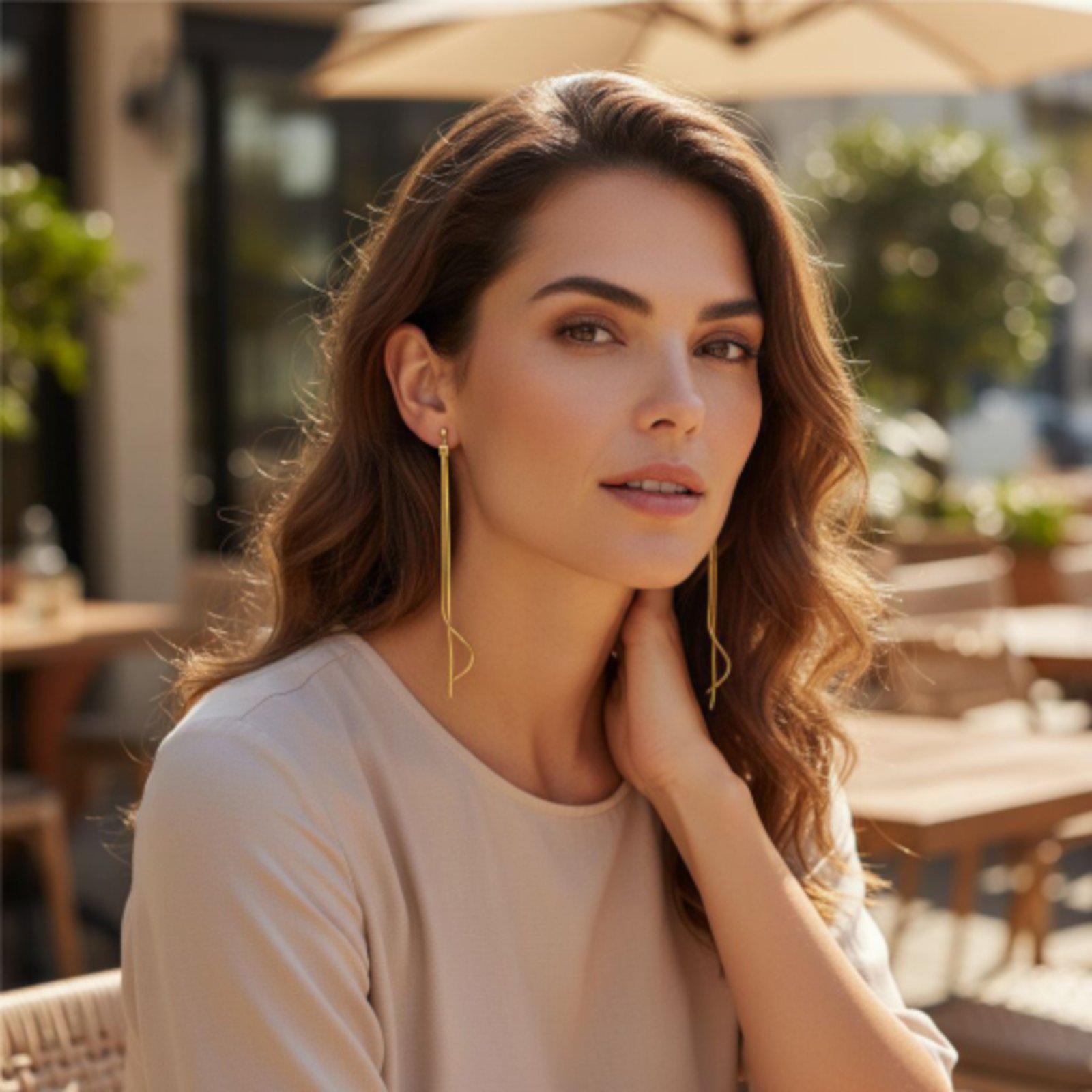 💎 Χρυσά μακριά σκουλαρίκια με minimal σχεδιασμό.