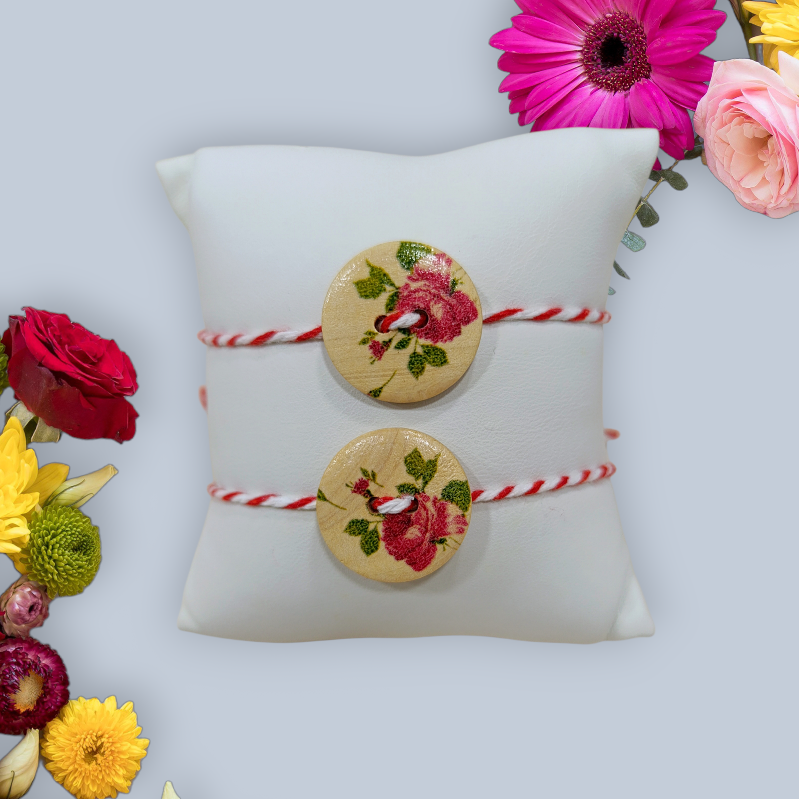 Χειροποίητο μαρτάκι με ξύλινο κουμπί με λουλούδια