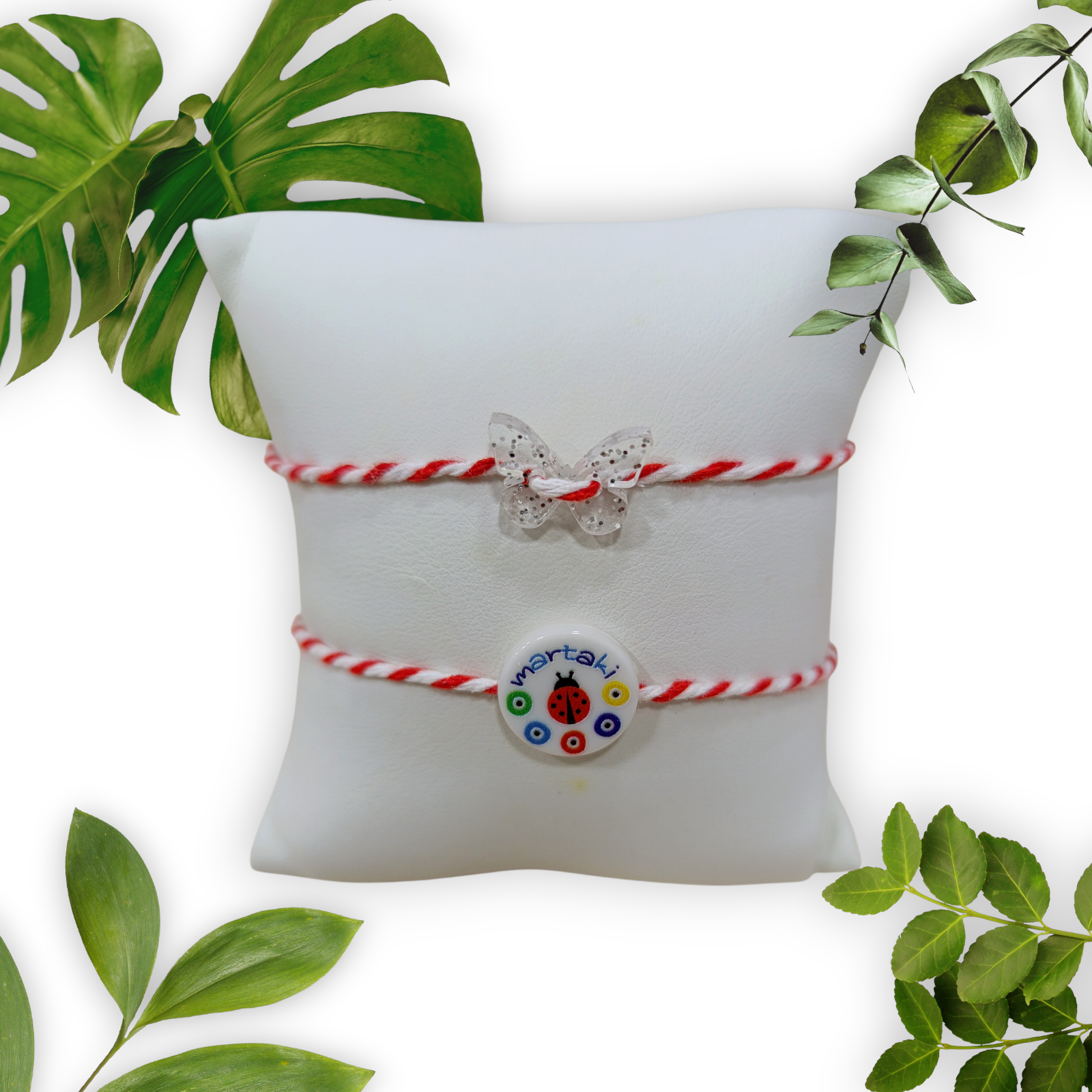 Χειροποίητο μαρτάκι με Plexiglass στοιχεία, πασχαλίτσα ή πεταλούδα. Κλείσιμο μακραμέ. Με αυξομείωση για όλους τους καρπούς.