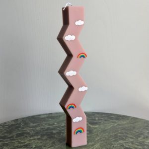 Λαμπάδα αρωματικό κερί/γλυπτό, χειροποίητο μέχρι και την τελευταία λεπτομέρεια και ζωγραφισμένο στο χέρι, σχέδιο “rainbow-cloud”. Άρωμα easter cookie.