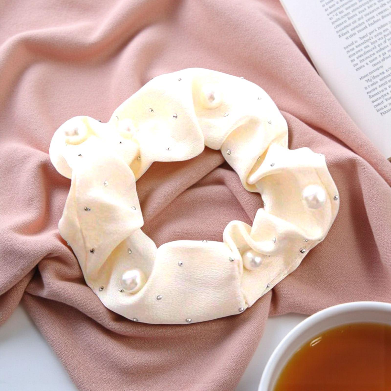 Scrunchies με πέρλα σε μπεζ απόχρωση.