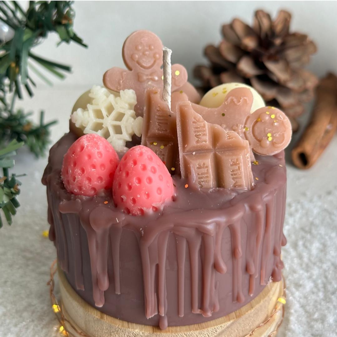 Το χριστουγεννιάτικο κερί τούρτα έχει βάρος περίπου 200g- 220g και διαστάσεις περίπου 7,5×7,5cm. Φτιαγμένο από φυσικό κερί σόγιας ή ελαιόλαδου, τρισδιάστατο.